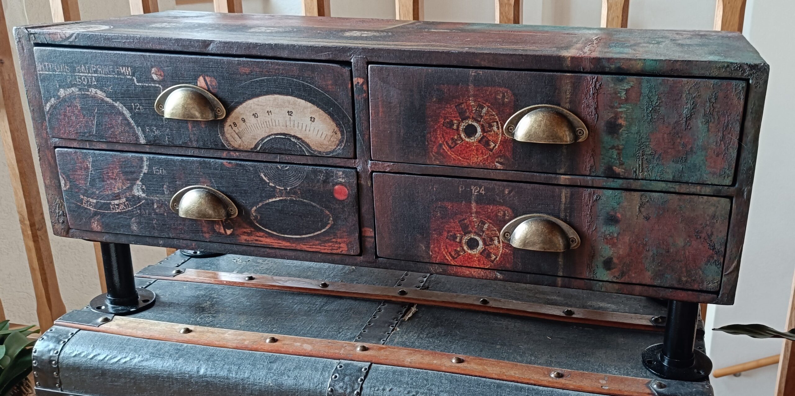 Meuble de métier 4 tiroirs pieds métal