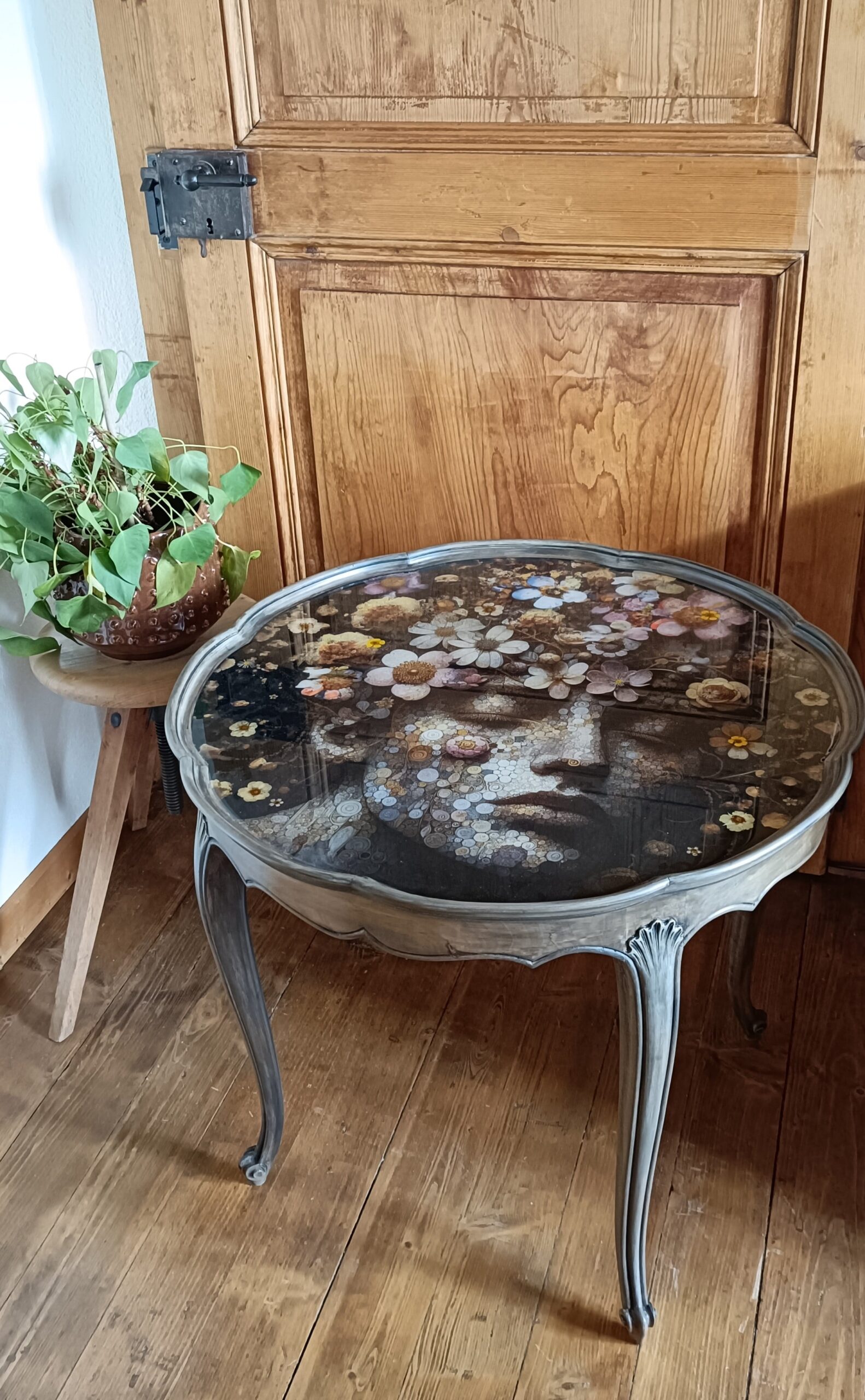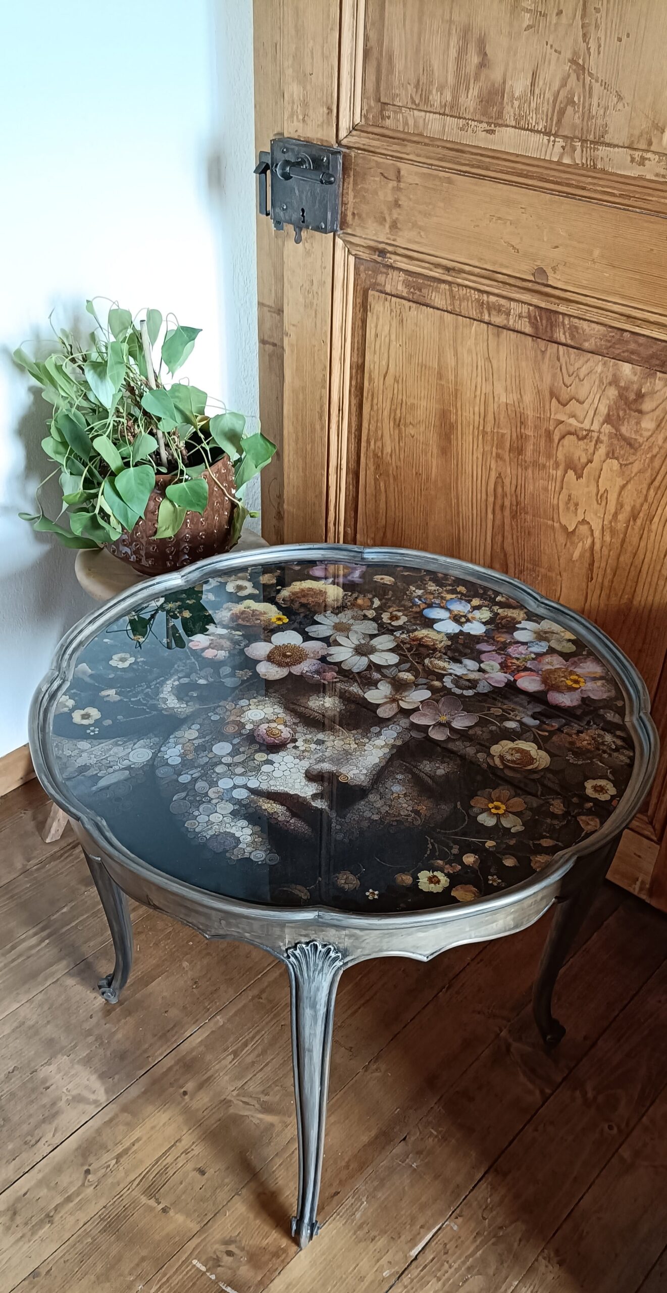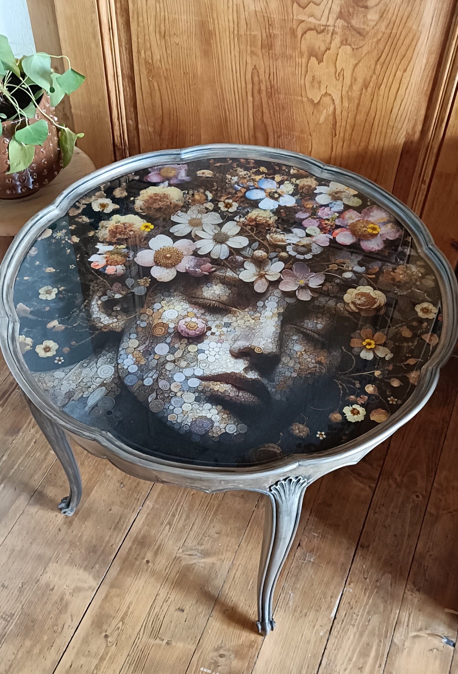Table fleur finition résine époxy